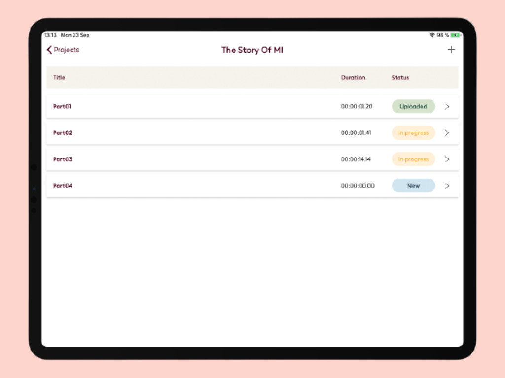 Mobile Interaction tillhandahöll ett flexibelt och agilt team under Storytels projektledning. I den första fasen av projektet låg fokus på att implementera befintliga app-funktioner på en ny plattform. Därefter lades nya funktioner till för att förenkla och effektivisera inläsningen.